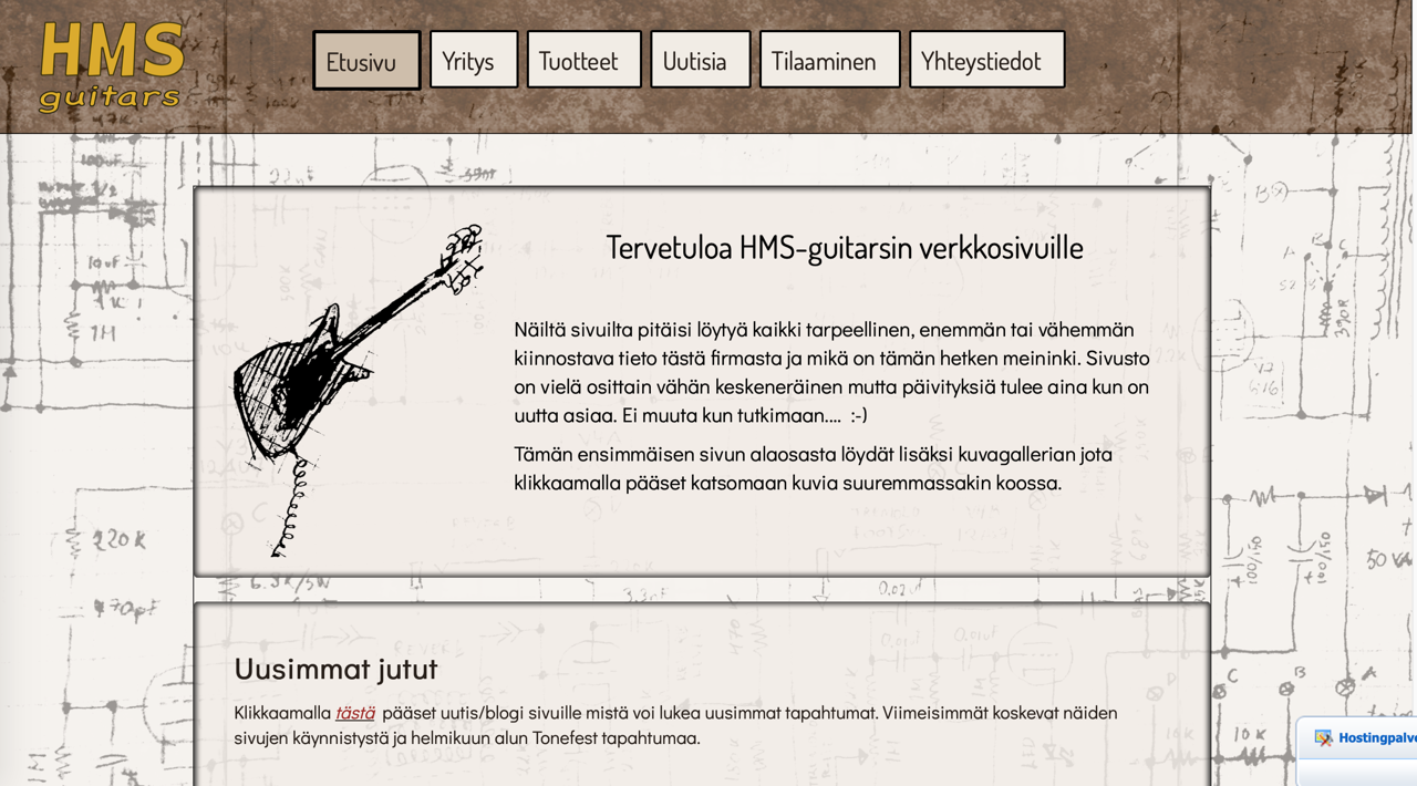 Noin. Nyt HMS-guitarsin verkkosivut ovat vihdoin todellisuutta. Niiden suunnitteluun meni oma aikansa, jonka jälkeen niiden toteuttaminen vei toisen mokoman, mutta nyt ne ovat saaneet lopullisen muotonsa. No, ainakin melkein lopullisen.